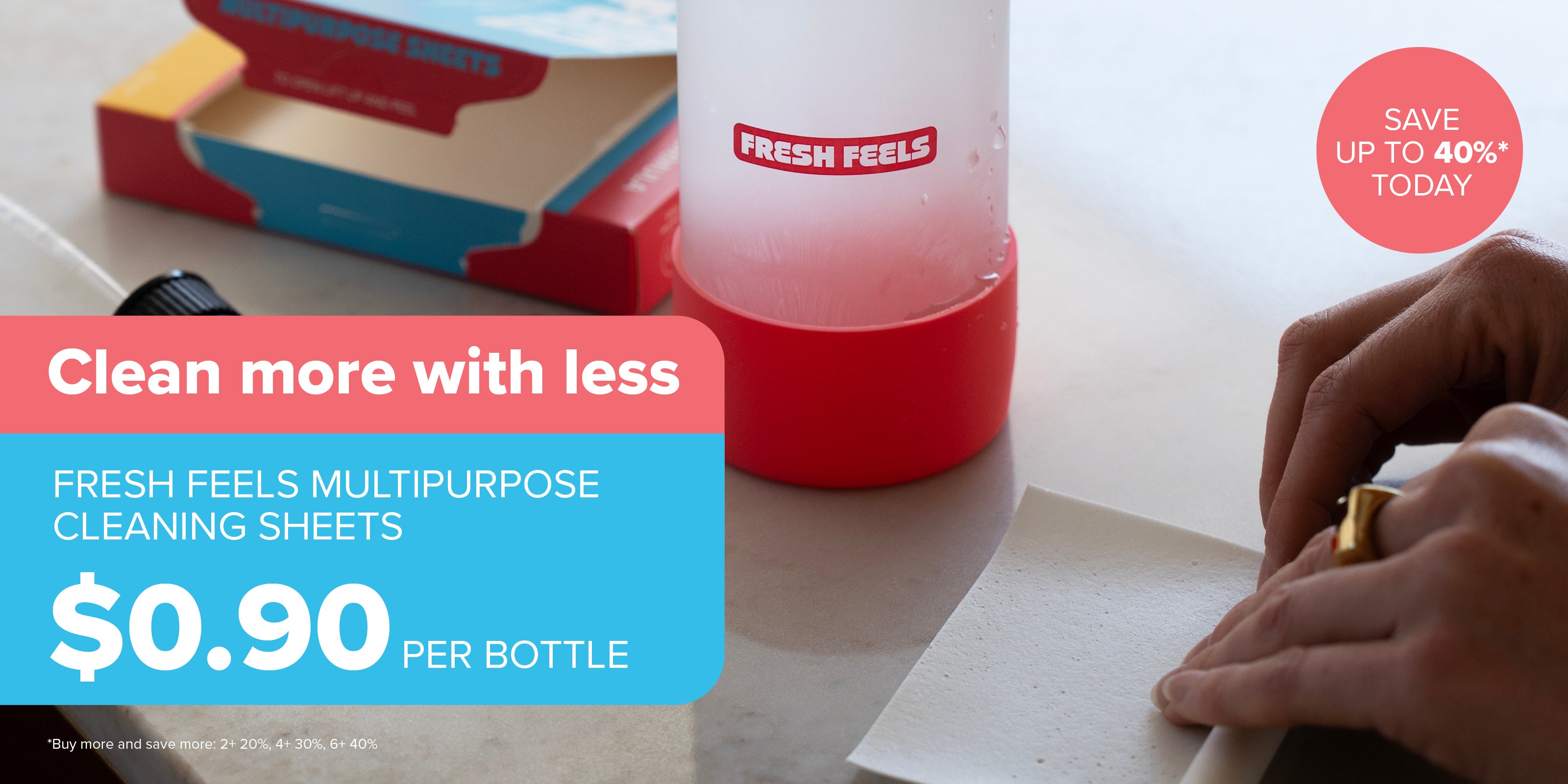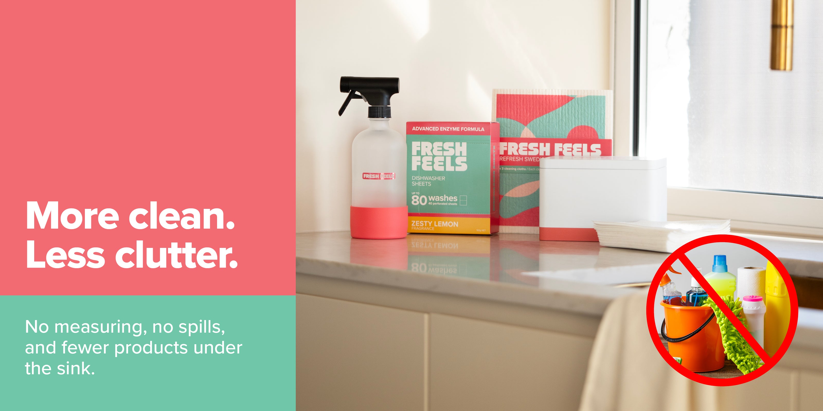 You don’t need bulky bottles or watered-down formulas to get results. Our sheets prove that big performance comes in small, lightweight packs that do more with less. They hit stains hard, cut through grease, and still manage to ditch the unnecessary plastic and excess packaging. By choosing Fresh Feels, you’re not just cleaning smarter, you’re cutting your environmental footprint every single time.